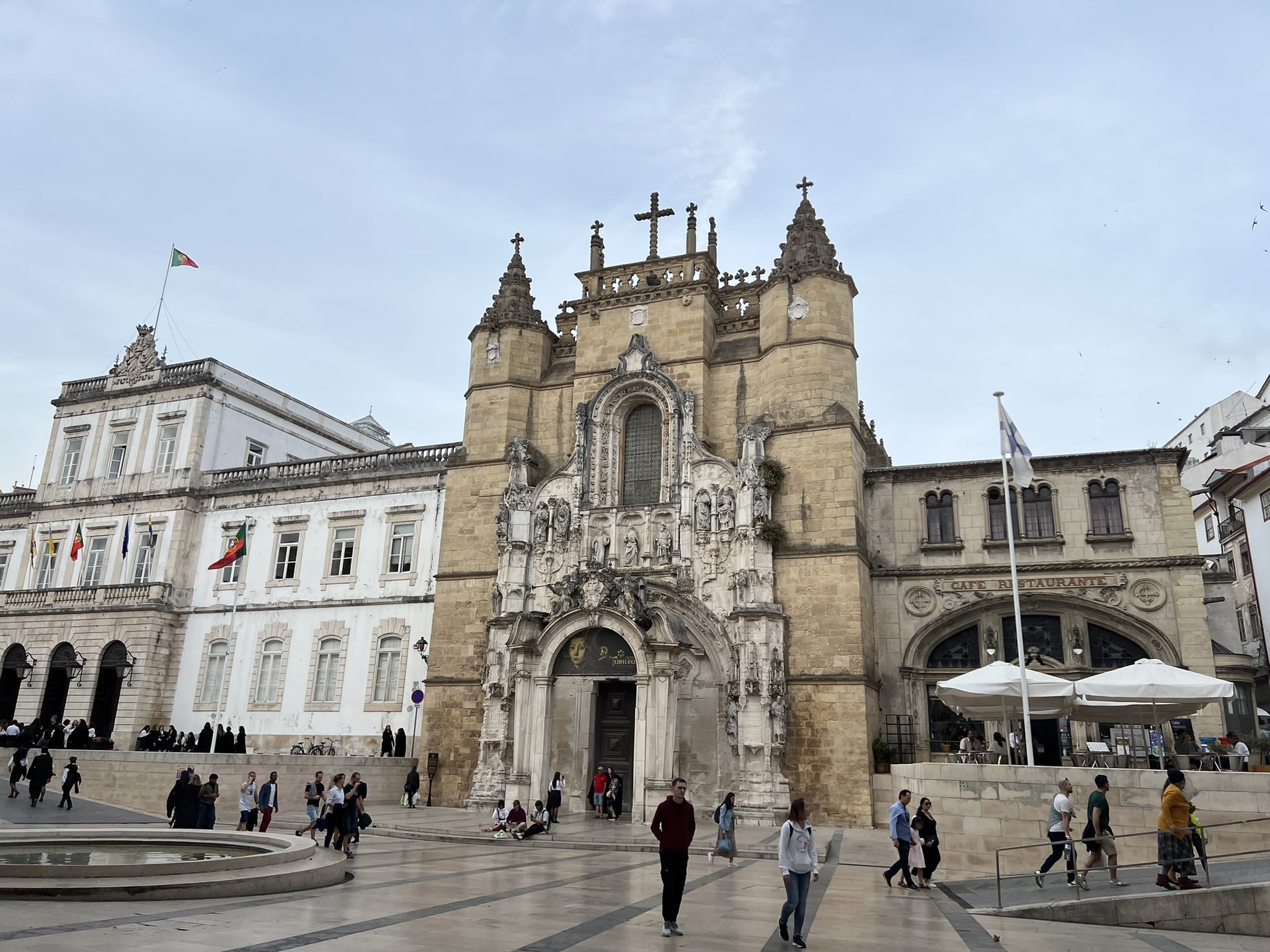 In Coimbra visit the historic Café Santa Cruz. The café has a monastic atmosphere as it was formerly the "Church for the Poor". Be sure to visit the Santa Cruz monastery, best known as Igreja de Santa Cruz. The first two kings of Portugal are buried in this church, which is itself a work of art. Only a wall separates the church and the emblematic café!