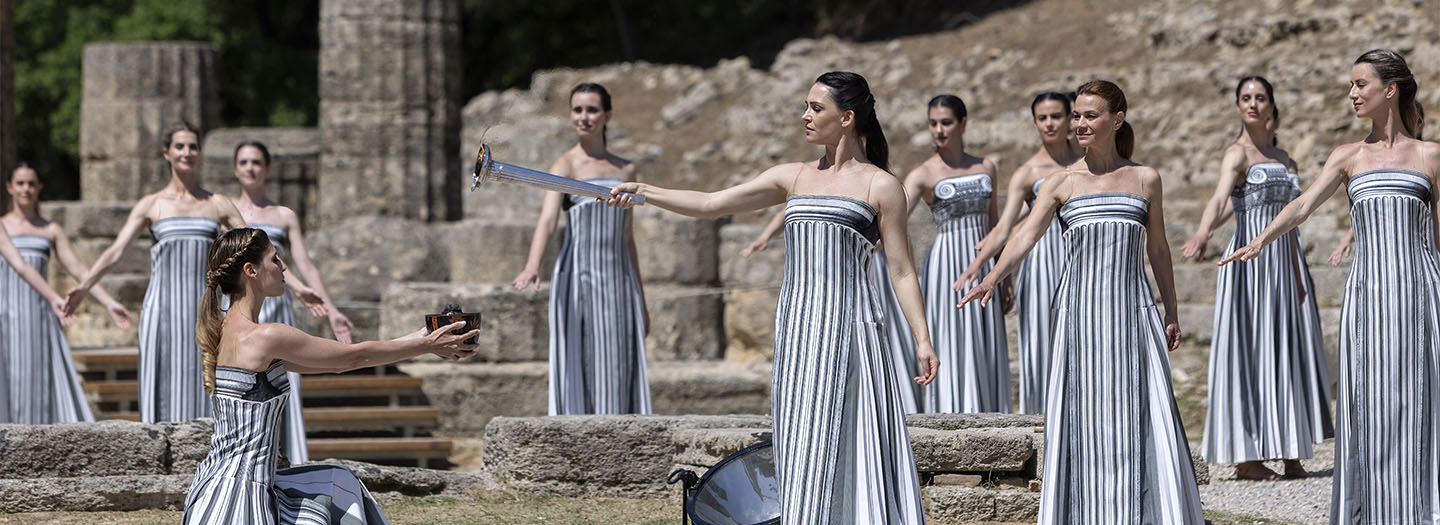The Olympic Flame was lit before the Games and burned until the events were over. Today’s lighting of the Flame follows the ancient tradition; it is lit during a ceremony in Olympia, where the Head Priestess of the temple of goddess Hera, followed by other priestesses, lowers the torch in a concave mirror as she calls upon Apollo, the god of light, to direct the sun’s rays there. The flame produced is then passed to the first torchbearer of the Olympic Torch Relay. After a journey of several months, the Flame arrives at the Olympic Stadium of the hosting city, where it burns for the duration of the Games.