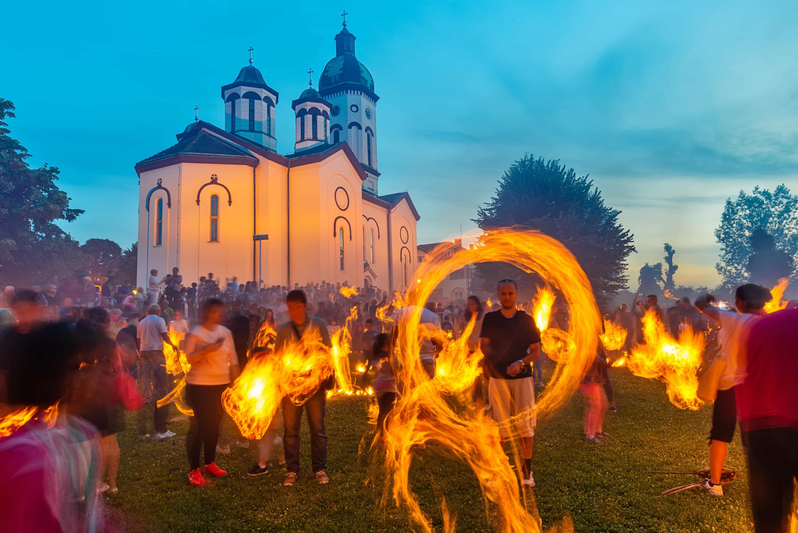 The city of Loznica and the region along the Drina River in Western Serbia are famous for an tradition known as lilanje. On the eve of the great St. Peter’s Day on July 12, candles made of young, wild cherry or birch bark are lit on a hazel stick. Lile are lit with large ceremonial fires in places where people gather in squares or at crossroads. Most participants of lilanje are children and young people, because lile also has a fun side, when participants enjoy themselves with folk songs and dances.