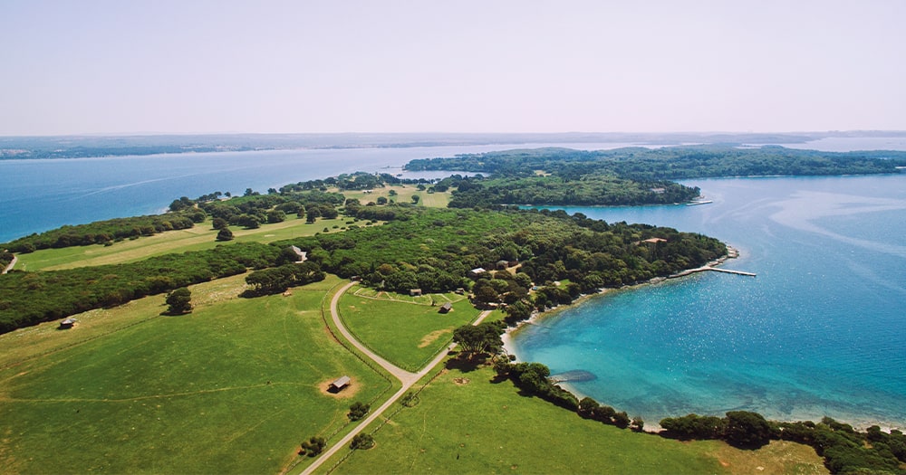 The Brijuni Islands are one of the most attractive tourist destinations in Croatia. This archipelago consists of fourteen green gems set within the blue expanse of the northern Adriatic just off the western coast of Istria. Together with the surrounding sea, they were proclaimed a national park in 1983. There is a regular daily boat service between the islands and the Port of Fažana, and they are only 6 km from Pula.