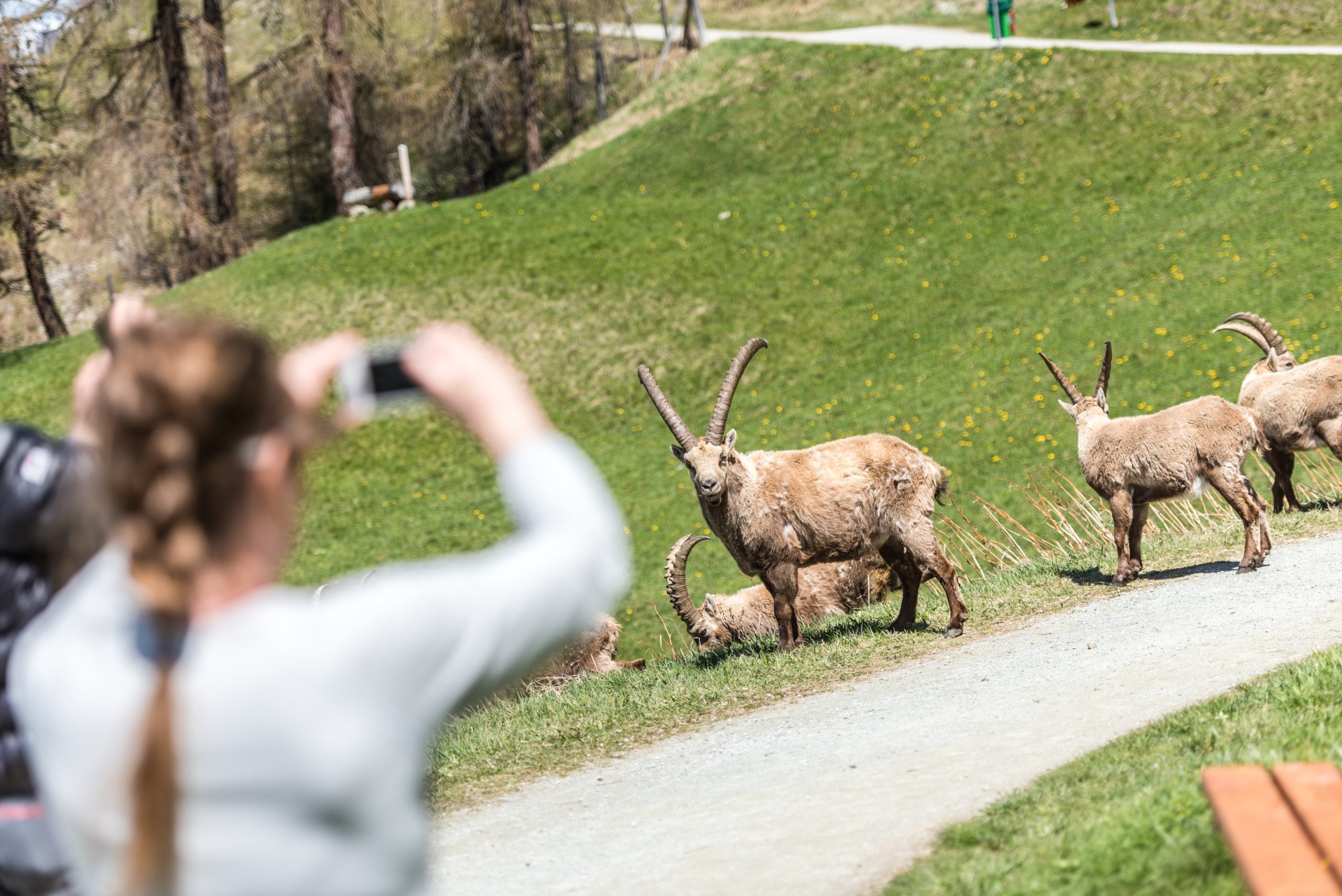 Marmots, known for their cheerful whistles and playful nature, are often spotted in alpine meadows where they live in burrow networks. To see these delightful mammals, head to Spielboden, near Saas-Fee, where marmots often scurry around the meadows or pop their heads out of burrows. Bring a bag of special nuts to feed them, to add a fun memory to your visit. Marmots hibernate in winter, but from mid-April they’re ready to greet you again.