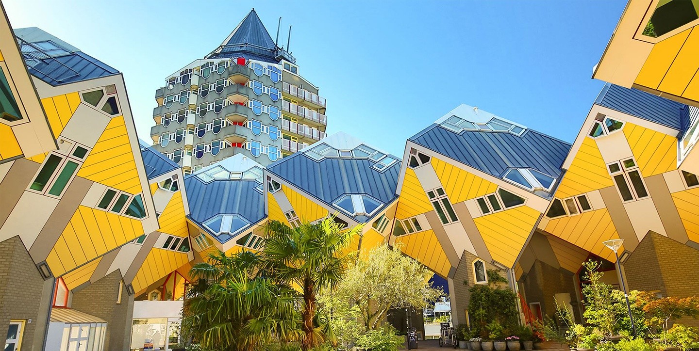 Pays d’origine de bon nombre de grands architectes, les Pays-Bas constituent une excellente première destination. Vous y trouverez le fruit d’expérimentations issues du structuralisme, du néo-rationalisme, du postmodernisme et du néo-modernisme datant des trois ou quatre dernières décennies. Vous trouverez notamment à Rotterdam de nombreuses perles architecturales, y compris les célèbres maisons cubiques près du centre-ville, la remarquable et éblouissante gare centrale, et son marché couvert courbé hébergeant des appartements et un espace unique qui regroupe certains des chefs-d’œuvre culinaires les plus intéressants du monde. Parcourez les longues pistes cyclables partant de Rotterdam et visitez différentes villes de façon efficace et amusante. Utilisez le réseau ferroviaire des Pays-Bas, rapide, efficace et durable, pour vous rendre dans différentes villes et y explorer l’architecture. Eindhoven, ville néerlandaise moins visitée, constitue un excellent choix en raison de ses nombreux bâtiments importants, comme le Pavillon du peuple.