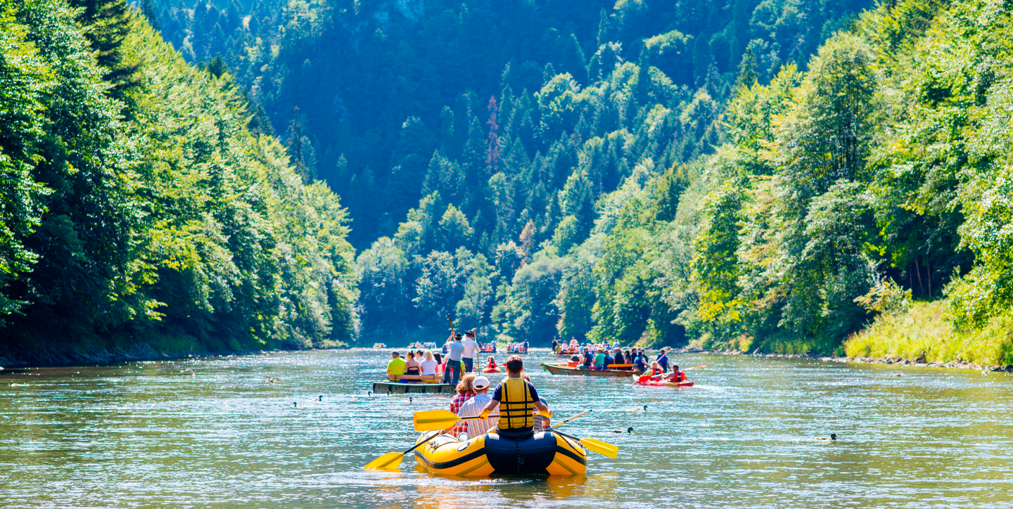 J’ai récemment passé plusieurs jours à découvrir en rafting les eaux cristallines du parc national sauvage des Pieniny, en Slovaquie. Alors que mon radeau glissait sur les eaux fraîches et pures, j’ai ressenti une véritable connexion avec la nature, une nature quasi intacte comme on en voit rarement. De chaque côté de la rivière s’élevaient des montagnes majestueuses recouvertes de forêts anciennes et luxuriantes. Si l’idée de jouer les capitaines de bateau vous semble un peu trop aventureuse, une autre option s’offre à vous : empruntez un bateau en bois dirigé par un marinier en tenue de montagne traditionnelle.